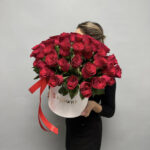 Красная роза – 51 шт, Коробка L, лента фирменная