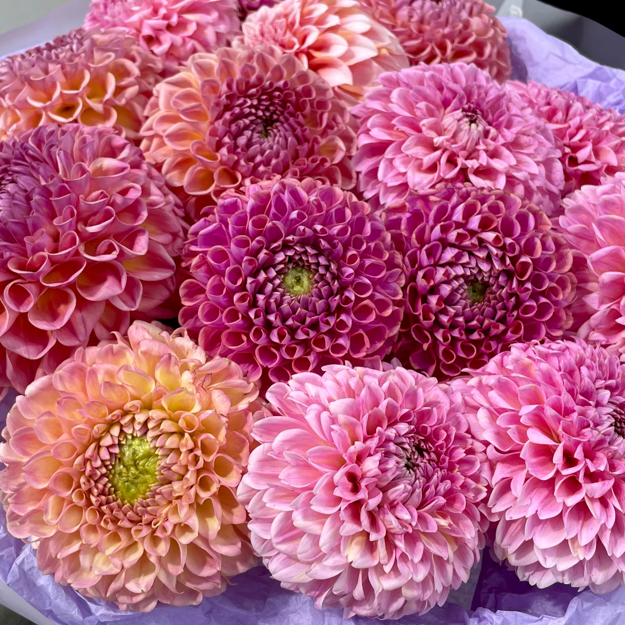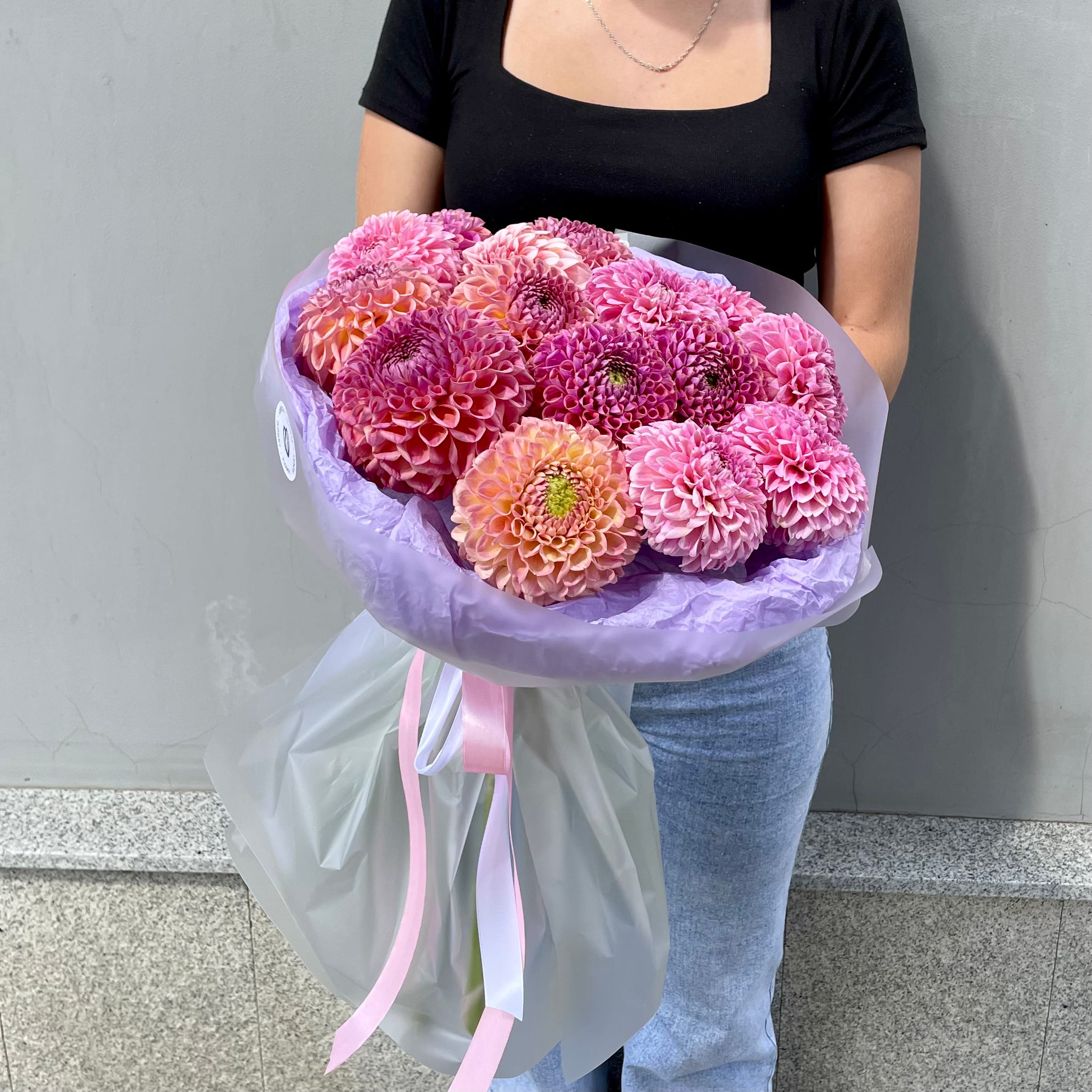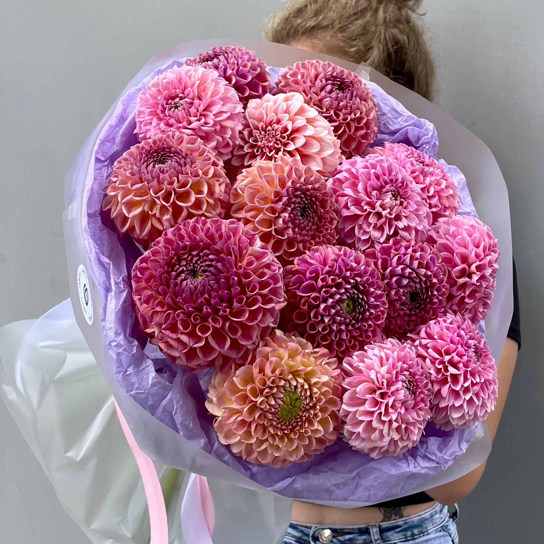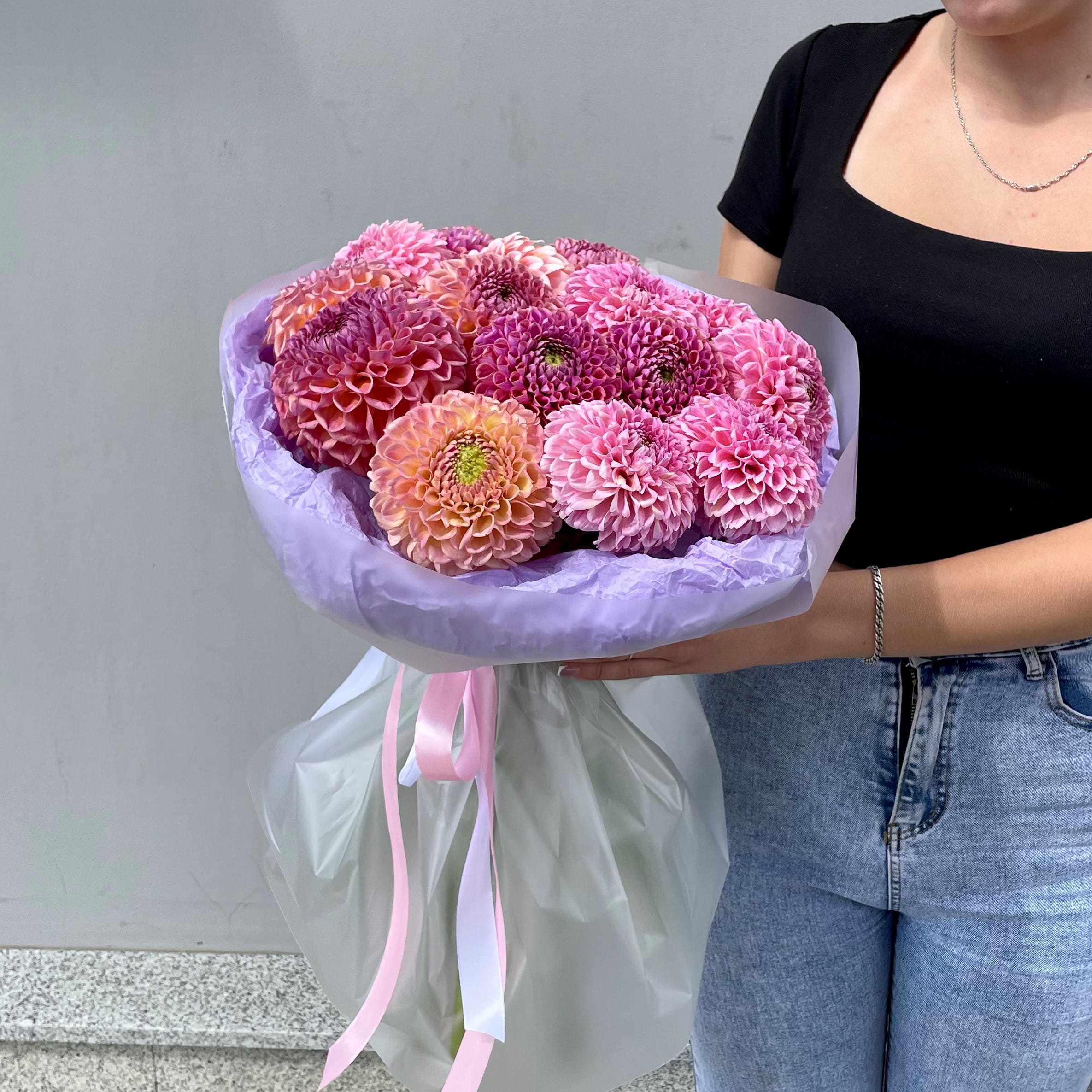 Летний букетик из сезонных свежих георгинов! Цветочки, описывающие август, нежные и яркие георгины во Flowry!